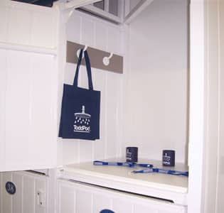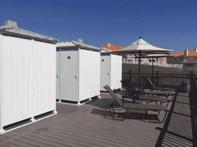 The ToddPod Outdoor Shower Enclosure is ideal for various commercial applications, including condominiums, beach clubs, yacht clubs, campgrounds, lake properties, waterparks, and hotels. Lockers and cabanas can be customized and connected in any size.