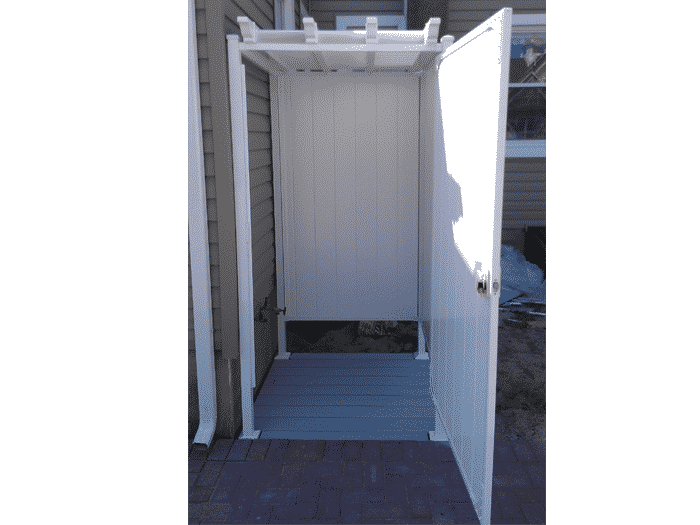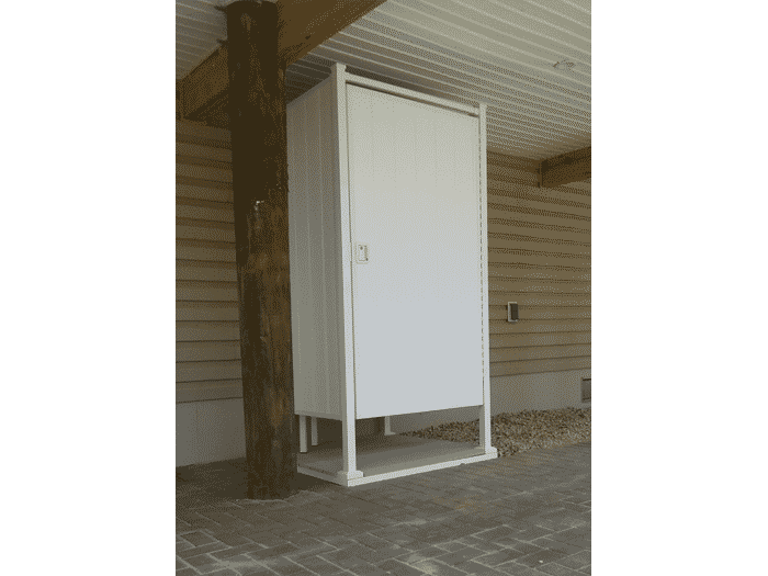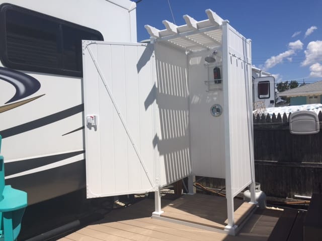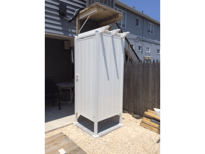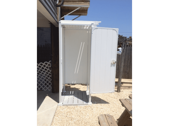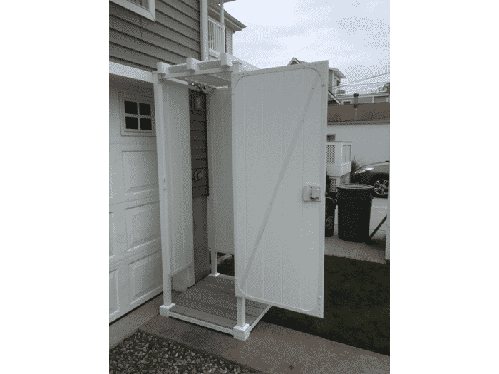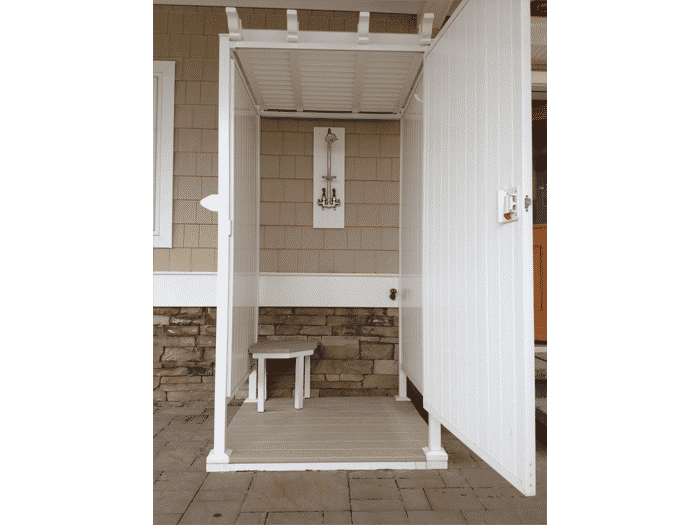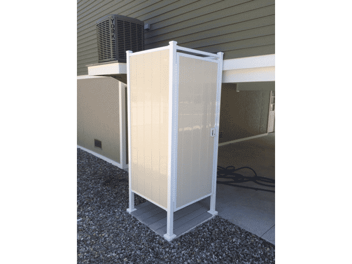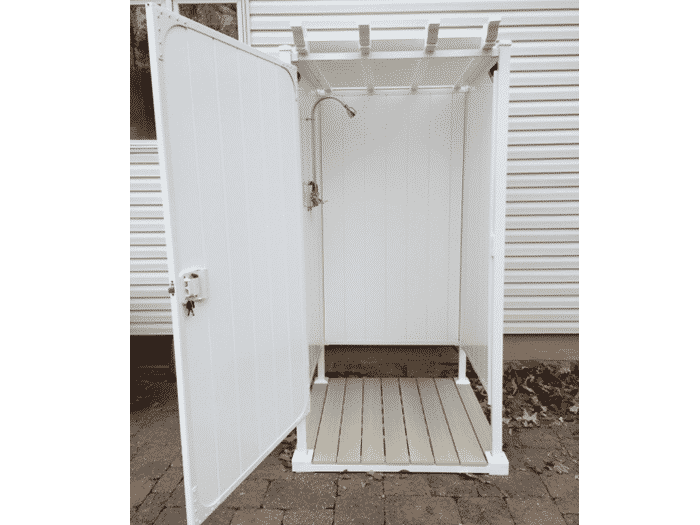 Looking for single outdoor shower stall ideas? Our single outdoor shower stall kit provides you with the convenience of being secure and private while showering. The door can be placed in any location on the shower unit and can be opened in any direction to suit your needs.